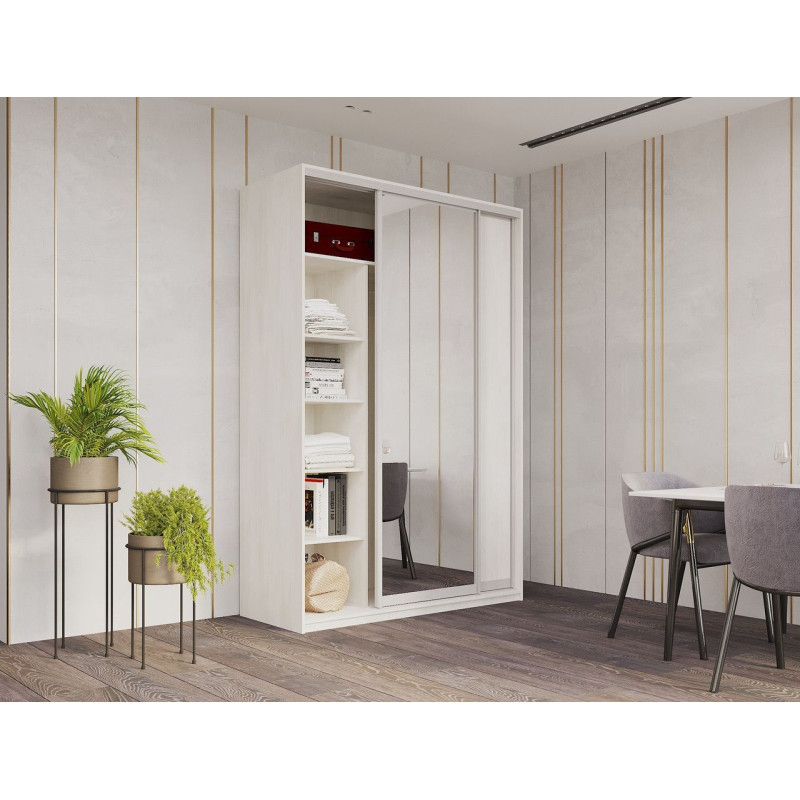 Шкаф купе Сити Лайт Белое дерево 1 ДСП / 1 Зеркало 150х60х225 (42002062)